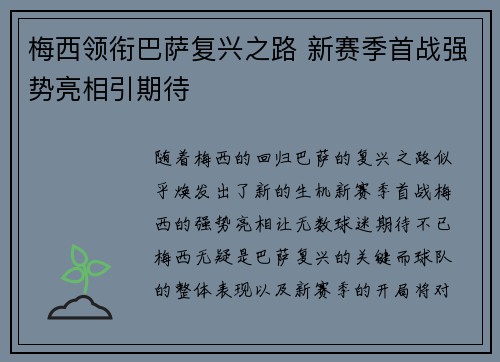 梅西加盟国际米兰,震撼登场,成为足坛历史上最具话题性的事件之一。这一转会不仅让全球球迷为之震惊,更为国际米兰带来了前所未有的关注和期待。作为世界足坛最具影响力的球员之一,梅西的加盟无疑为国际米兰注入了...